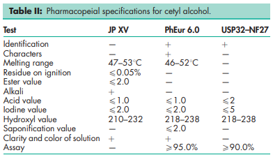 BP: Cetyl Alcohol JP: Cetanol PhEur: Cetyl Alcohol USP-NF: Cetyl Alcohol