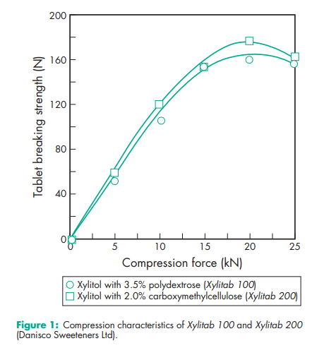 Various directly compressible forms of xylitol that contain other excipients are commercially available, e.g. Xylitab 100, which contains 3.5% polydextrose, and Xylitab 200, which contains 2.0% carboxymethylcellulose (both Danisco Sweeteners Ltd). A directly compressible form of pure xylitol is also available, Xylitab 300 (Danisco Sweeteners Ltd), which is produced via wet granulation. Pyrogen-free grades of xylitol suitable for parenteral use are also commercially available.