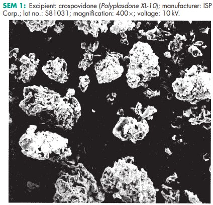 Crospovidone is one of the materials that have been selected for harmonization by the Pharmacopeial Discussion Group. For further information see the General Information Chapter <1196> in the USP32–NF27, the General Chapter 5.8 in PhEur 6.0, along with the ‘State of Work’ document on the PhEur EDQM website, and also the General Information Chapter 8 in the JP XV. Crospovidone has been studied as a superdisintegrant. The ability of the compound to swell has been examined directly using scanning electron microscopy.(9) The impact of crospovidone on percolation has also been examined.(10) The impact of crospovidone on dissolution of poorly soluble drugs in tablets has also been investigated.(11) Crospovidone has been shown to be effective with highly hygroscopic drugs.(12) It continues to be examined for its uses in a number of tablet formulations. A specification for crospovidone is contained in the Food Chemicals Codex (FCC).(13) The PubChem Compound ID (CID) for crospovidone is 6917.