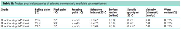 Cyclomethicone occurs as a clear, colorless and tasteless volatile liquid.