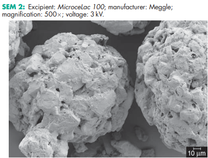 Lactose monohydrate and microcrystalline cellulose are two of the materials that have been selected for harmonization by the Pharmacopeial Discussion Group. For further information see the General Information Chapter <1196> in the USP32–NF27, the General Chapter 5.8 in PhEur 6.0, along with the ‘State of Work’ document on the PhEur EDQM website, and also the General Information Chapter 8 in the JP XV. MicroceLac 100 has been designed for formulating high-dose small tablets with a poorly flowable active ingredient. It showed superior flow and binding properties compared to simple mixtures of its components.(1,2) Differences between MicroceLac 100 and Cellactose 80 have recently been evaluated.(3) A specification for lactose and microcrystalline cellulose spheres is contained in the Japanese Pharmaceutical Excipients (JPE);