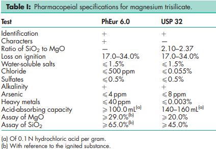 BP: Magnesium Trisilicate PhEur: Magnesium Trisilicate USP: Magnesium Trisilicate