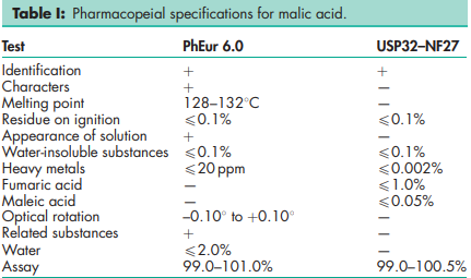 BP: Malic Acid PhEur: Malic Acid USP-NF: Malic Acid