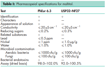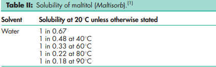 Maltitol is widely used in the pharmaceutical industry in the formulation of oral dosage forms. It is a noncariogenic bulk sweetener, approximately as sweet as sucrose, well adapted as a diluent for different oral dosage forms, wet granulation, and sugarfree hard coating.