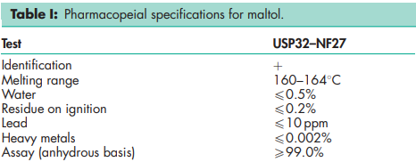 Acidity/alkalinity pH = 5.3 (0.5% w/v aqueous solution) Melting point 162–1648C (begins to sublime at 938C) NIR spectra see Figure 1. Solubility see Table II.