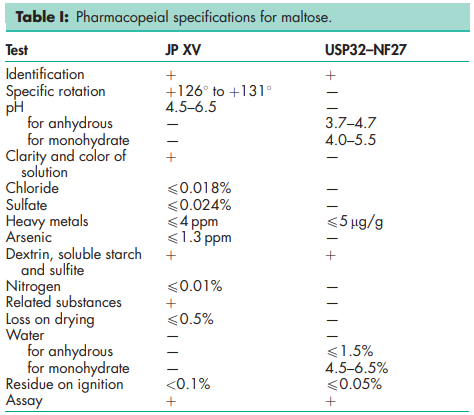 JP: Maltose Hydrate USP-NF: Maltose