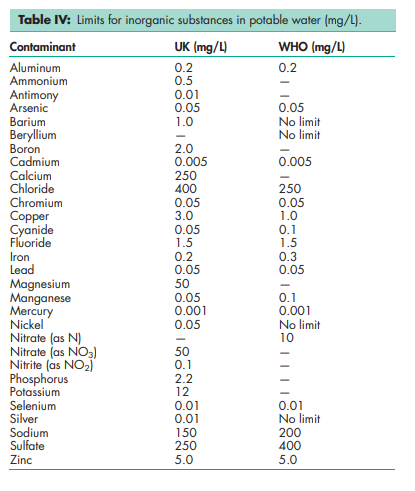 In most pharmacopeias, the term ‘water’ now refers to purified or distilled water. Without further purification, ‘water’ may be unsuitable for certain pharmaceutical applications; for example, the presence of calcium in water affects the viscosity and gel strength of algins and pectin dispersions, while the use of potable water affects the clarity and quality of cough mixtures, and the stability of antibiotic liquid preparations. Water commonly contains salts of aluminum, calcium, iron, magnesium, potassium, sodium, and zinc. Toxic substances such as arsenic, barium, cadmium, chromium, cyanide, lead, mercury, and selenium may constitute a danger to health if present in excessive amounts. Ingestion of water containing high amounts of calcium and nitrate is also contraindicated. National standards generally specify the maximum limits for these inorganic substances in potable water. Limits have also been placed on microorganisms, detergents, phenolics, chlorinated phenolics, and other organic substances. The WHO(11) and national bodies have issued guidelines for water quality, although many countries have their own standards for water quality embodied in specific legislation.(12) Control of microbiological contamination is critical for waters used in preparation of pharmaceuticals, as proliferation of microorganisms can potentially occur during all stages of manufacture, storage, or distribution. Suitable control is achieved by ensuring that the water system is well designed and well maintained. Purified water that is produced, stored, and circulated at ambient temperatures is susceptible to the establishment of biofilms; therefore, frequent monitoring, high usage, correct flow rate, and appropriate sanitization are all factors that require consideration to ensure that water is satisfactory.(13) Monitoring of the whole system is essential in order to demonstrate that correct microbiological quality is achieved. For WFI, the recommended methodology is membrane filtration (0.45 mm) as a large sample size (100–300 mL) is required. For purified water, membrane filtration or plate count methods are typically used depending on the quality requirements of the system. It is important to set appropriate target, alert, and action limits to serve as an indication of action required to bring the quality of water back under control. It is recognized that limits are not intended as pass/fail criteria for water or product batches; however, an investigation regarding the implications should be conducted.(14) Validation is conducted to provide a high level of assurance that the water production and distribution system will consistently produce water conforming to a defined quality specification. The validation process serves to qualify the design (DQ), installation (IQ), operation (OQ), and performance (PQ) of the system. The extent of monitoring data required should be defined, with consideration given to whether validation to FDA guidelines is required.(14) It is also important to have an ongoing control program with respect to maintenance, and periodic reviews of the performance of the water system. The PubChem Compound ID (CID) for water is 962. See Table IV.