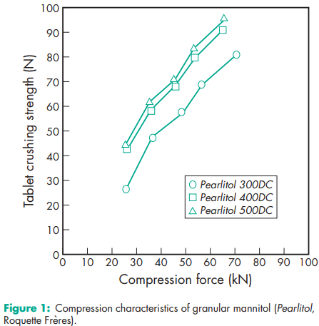 Mannitol is stable in the dry state and in aqueous solutions. Solutions may be sterilized by filtration or by autoclaving and if necessary may be autoclaved repeatedly with no adverse physical or chemical effects.(18) In solution, mannitol is not attacked by cold, dilute acids or alkalis, nor by atmospheric oxygen in the absence of catalysts. Mannitol does not undergo Maillard reactions. The bulk material should be stored in a well-closed container in a cool, dry placeoquette Fre`res). Tablet diameter: 20 mm. Lubricant: magnesium stearate 0.7% w/w for Pearlitol 400 DC and Pearlitol 500 DC; magnesium stearate 1% w/w for Pearlitol 300 DC.
