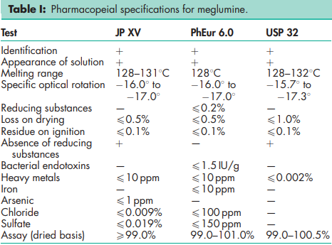 BP: Meglumine JP: Meglumine PhEur: Meglumine USP: Meglumine
