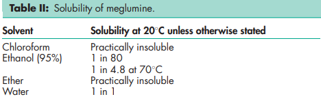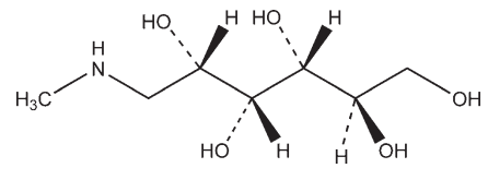 Meglumin; meglumina; megluminum; 1-methylamino-1-deoxy-Dglucitol; N-methylglucamine; N-methyl-D-glucamine.