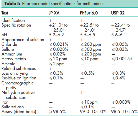 BP: Methionine JP: L-Methionine PhEur: Methionine USP: Methionine