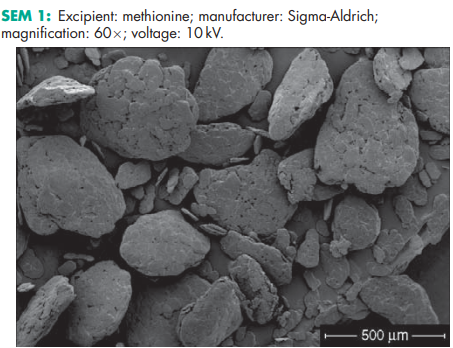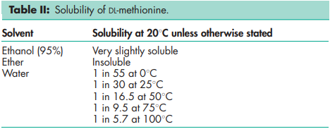 Methionine occurs as a white or almost white, crystalline powder or colorless crystals.