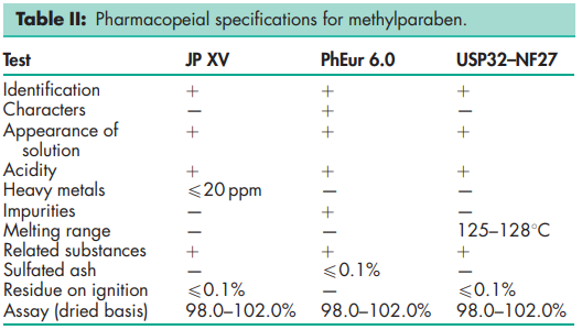 BP: Methyl Hydroxybenzoate JP: Methyl Parahydroxybenzoate PhEur: Methyl Parahydroxybenzoate USP-NF: Methylparaben