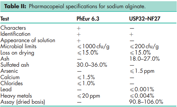 BP: Sodium Alginate PhEur: Sodium Alginate USP-NF: Sodium Alginate