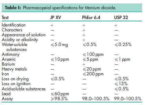 BP: Titanium Dioxide JP: Titanium Oxide PhEur: Titanium Dioxide USP: Titanium Dioxide