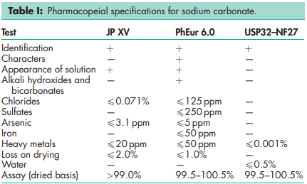 BP: Anhydrous Sodium Carbonate JP: Dried Sodium Carbonate PhEur: Sodium Carbonate, Anhydrous USP-NF: Sodium Carbonate