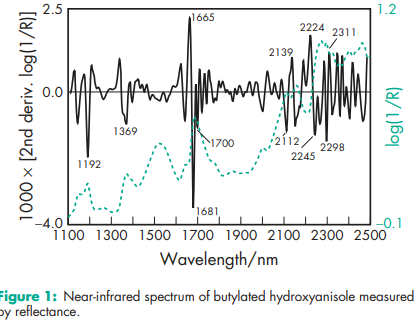 Antimicrobial activity Activity is similar to that of the phydroxybenzoate esters (parabens). The greatest activity is against molds and Gram-positive bacteria, with less activity against Gram-negative bacteria. Boiling point 2648C at 745 mmHg Density (true) 1.117 g/cm3 Flash point 1308C Melting point 478C (for pure 2-tert-butyl-4-methoxyphenol); see also Section 18. NIR spectra see Figure 1. Solubility Practically insoluble in water; soluble in methanol; freely soluble in 550% aqueous ethanol, propylene glycol, chloroform, ether, hexane, cottonseed oil, peanut oil, soybean oil, glyceryl monooleate, and lard, and in solutions of alkali hydroxides. Viscosity (kinematic) 3.3 mm2 /s (3.3 cSt) at 998C.