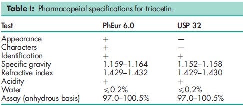 BP: Triacetin PhEur: Triacetin USP: Triacetin