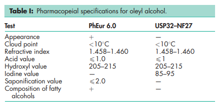 BP: Oleyl Alcohol PhEur: Oleyl Alcohol USP-NF: Oleyl Alcohol