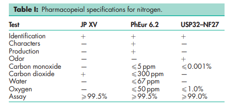 BP: Nitrogen JP: Nitrogen PhEur: Nitrogen USP-NF: Nitrogen