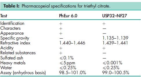 BP: Triethyl Citrate PhEur: Triethyl Citrate USP-NF: Triethyl Citrate