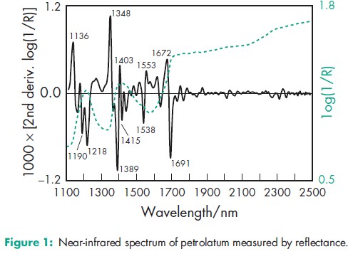 NIR spectra see Figure 1. Refractive index nD 60 = 1.460–1.474 Solubility Practically insoluble in acetone, ethanol, hot or cold ethanol (95%), glycerin, and water; soluble in benzene, carbon disulfide, chloroform, ether, hexane, and most fixed and volatile oils. Viscosity (dynamic) The rheological properties of petrolatum are determined by the ratio of the unbranched chains to the branched chains and cyclic components of the mixture. Petrolatum contains relatively high amounts of branched and cyclic hydrocarbons, in contrast to paraffin, which accounts for its softer character and makes it an ideal ointment base.(2–5)