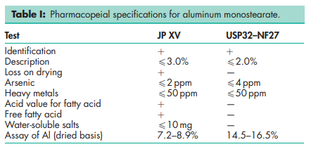 JP: Aluminum Monostearate USP-NF: Aluminum Monostearate