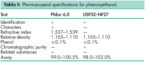 BP: Phenoxyethanol PhEur: Phenoxyethanol USP-NF: Phenoxyethanol