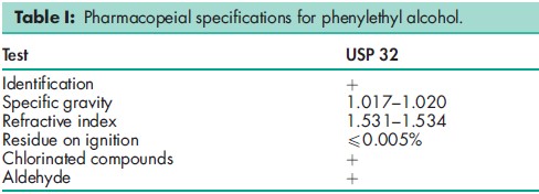 Phenylethyl alcohol is used as an antimicrobial preservative in nasal, ophthalmic, and otic formulations at 0.25–0.5% v/v concentration; it is generally used in combination with other preservatives.(1–3) Phenylethyl alcohol has also been used on its own as an antimicrobial preservative at concentrations up to 1% v/v in topical preparations. At this concentration, mycoplasmas are inactivated within 20 minutes, although enveloped viruses are resistant.(4) Phenylethyl alcohol is also used in flavors and as a perfumery component, especially in rose perfumes.