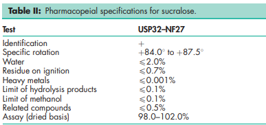 Sucralose is a relatively stable material. In aqueous solution, at highly acidic conditions (pH < 3), and at high temperatures (4358C), it is hydrolyzed to a limited extent, producing 4-chloro-4- deoxygalactose and 1,6-dichloro-1,6-dideoxyfructose. In food products, sucralose remains stable throughout extended storage periods, even at low pH. However, it is most stable at pH 5–6. Sucralose should be stored in a well-closed container in a cool, dry place, at a temperature not exceeding 218C. Sucralose, when heated at elevated temperatures, may break down with the release of carbon dioxide, carbon monoxide, and minor amounts of hydrogen chloride.