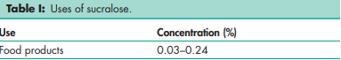 Sucralose is used as a sweetening agent in beverages, foods, and pharmaceutical applications. It has a sweetening power approximately 300–1000 times that of sucrose and has no aftertaste. It has no nutritional value, is noncariogenic, does not promote dental caries, and produces no glycemic response.