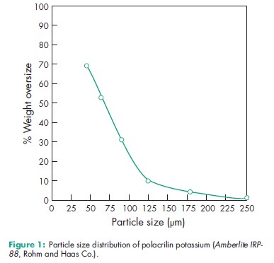 Polacrilin resin (Amberlite IRP-64) is prepared by the copolymerization of methacrylic acid with divinylbenzene (DVB). Polacrilin potassium (Amberlite IRP-88) is then produced by neutralizing this resin with potassium hydroxide. Other resins are similarly produced by copolymerization between styrene and divinylbenzene (Amberlite IRP-69, Amberlite IRP-67, Amberlite IR-120, and Amberlite IRA-400). Phenolicbased polyamine condensates (Amberlite IRP-58) may also be produced. The homogeneity of the resin structure depends on the purity, nature, and properties of the copolymers used as well as the controls and conditions employed during the polymerization reaction. The nature and degree of crosslinking have significant influence on the physicochemical properties of the resin matrix. The functional groups introduced on the matrix confer the property of ion exchange. Depending upon the acidity or basicity of the functional groups, strongly acidic to strongly basic types of ion-exchange resins may be produced.