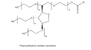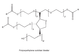 w þ x þ y þ z = 20 (Polysorbates 20, 40, 60, 65, 80, and 85) w þ x þ y þ z = 5 (Polysorbates 81) w þ x þ y þ z = 4 (Polysorbates 21 and 61) R = fatty acid