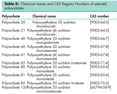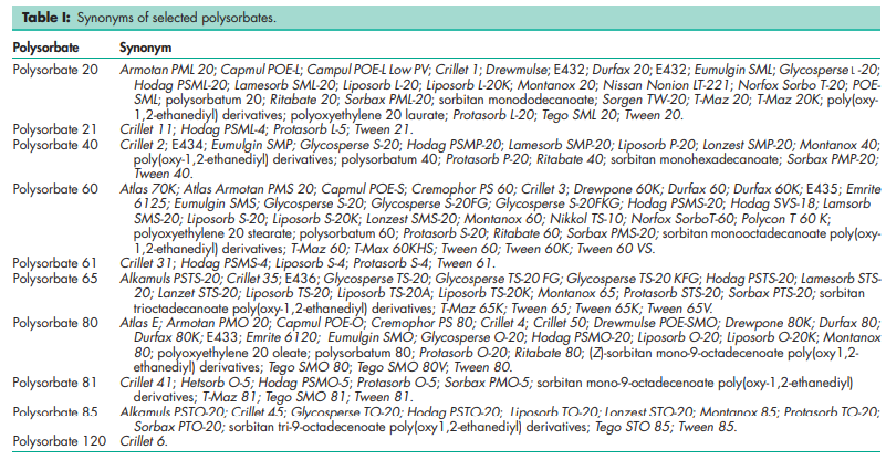 For synonyms of selected polysorbates,see Table I