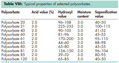 Approximate molecular weights for selected polysorbates are shown in Table III.