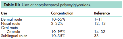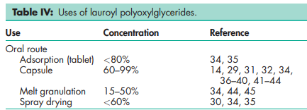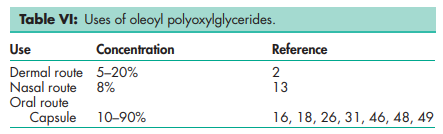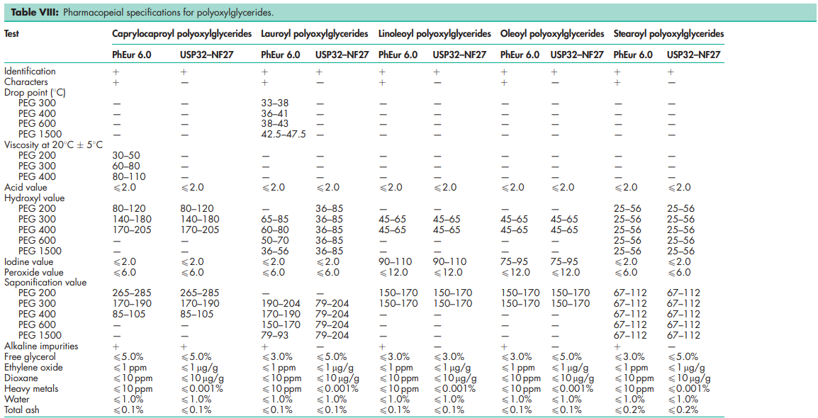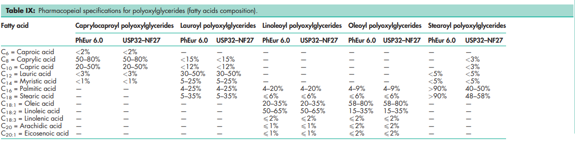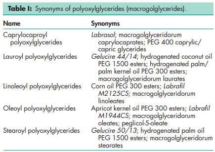Polyoxylglycerides are referred to as macrogolglycerides in Europe; see Table I.