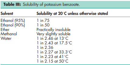 Potassium benzoate is prepared from the acid–base reaction between benzoic acid and potassium hydroxide.