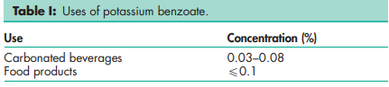 Potassium benzoate is predominantly used as an antimicrobial preservative in a wide range of beverages, foods and some pharmaceutical formulations. Preservative efficacy increases with decreasing pH; it is most effective at pH 4.5 or below. However, at low pH undissociated benzoic acid may produce a slight though discernible taste in food products. Increasingly, potassium benzoate is used as an alternative to sodium benzoate in applications where a low sodium content is desirable. Therapeutically, potassium benzoate has also been used in the management of hypokalemia.
