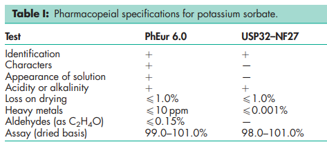 BP: Potassium Sorbate PhEur: Potassium Sorbate USP-NF: Potassium Sorbate