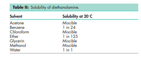 Diethanolamine is a secondary amine that contains two hydroxy groups. It is capable of undergoing reactions typical of secondary amines and alcohols. The amine group usually exhibits the greater activity whenever it is possible for a reaction to take place at either the amine or a hydroxy group. Diethanolamine will react with acids, acid anhydrides, acid chlorides, and esters to form amide derivatives, and with propylene carbonate or other cyclic carbonates to give the corresponding carbonates. As a secondary amine, diethanolamine reacts with aldehydes and ketones to yield aldimines and ketimines. Diethanolamine also reacts with copper to form complex salts. Discoloration and precipitation will take place in the presence of salts of heavy metals.