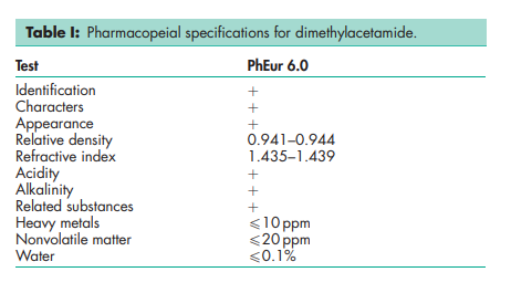 BP: Dimethylacetamide PhEur: Dimethylacetamide