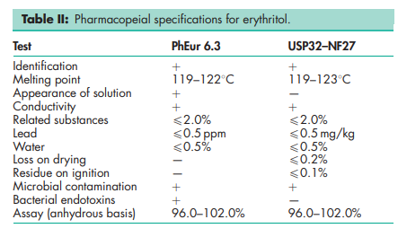 BP: Erythritol PhEur: Erythritol USP-NF: Erythritol