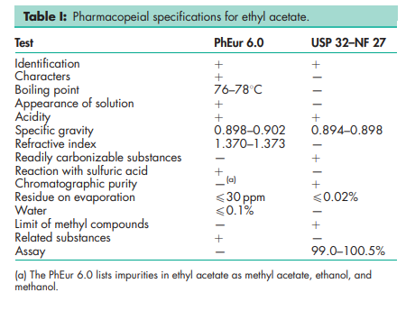 BP: Ethyl Acetate PhEur: Ethyl Acetate USP-NF: Ethyl Acetate