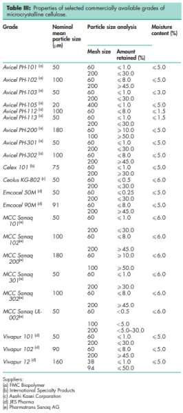 Microcrystalline cellulose is widely used in pharmaceuticals, primarily as a binder/diluent in oral tablet and capsule formulations where it is used in both wet-granulation and direct-compression processes.(1–7) In addition to its use as a binder/diluent, microcrystalline cellulose also has some lubricant(8) and disintegrant properties that make it useful in tableting. Microcrystalline cellulose is also used in cosmetics and food products;
