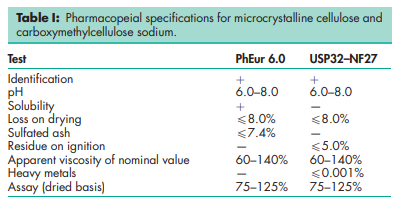 BP: Dispersible Cellulose PhEur: Microcrystalline Cellulose and Carmellose Sodium USP-NF: Microcrystalline Cellulose and Carboxymethylcellulose Sodium