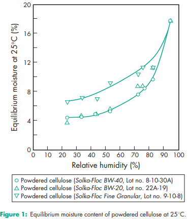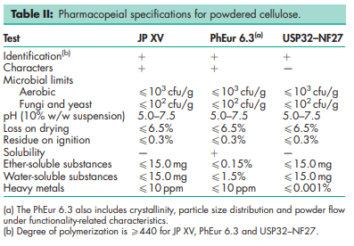 Powdered cellulose is one of the materials that have been selected for harmonization by the Pharmacopeial Discussion Group. For further information see the General Information Chapter <1196> in the USP32–NF27, the General Chapter 5.8 in PhEur 6.0, along with the ‘State of Work’ document on the PhEur EDQM website, and also the General Information Chapter 8 in the JP XV. When powdered cellulose was used as a tablet disintegrant, tablets could be stored up to 78% RH without losing their rapid disintegration properties.(10) Tablets disintegrating rapidly in the oral cavity were also successfully prepared with powdered cellulose.(11) Coprocessing of powdered cellulose with magnesium carbonate by roller compaction has resulted in a promising excipient for direct tableting.(12) Highly porous matrices from powdered cellulose may be suitable for stabilization and handling of liquid drug substances.(13) A specification for powdered cellulose is contained in the Food Chemicals Codex (FCC).(14) The EINECS number for powdered cellulose is 232-674-9.