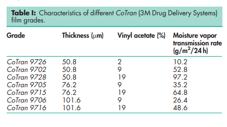 Ethylene vinyl acetate copolymers are used as membranes and backings in laminated transdermal drug delivery systems. They can also be incorporated as components in backings in transdermal systems. Ethylene vinyl acetate copolymers have been shown to be an effective matrix and membrane for the controlled delivery of atenolol(1,2) triprolidine,(3,4) and furosemide.(5) The system for the controlled release of atenolol can be further developed using ethylene vinyl acetate copolymers and plasticizers.(1)